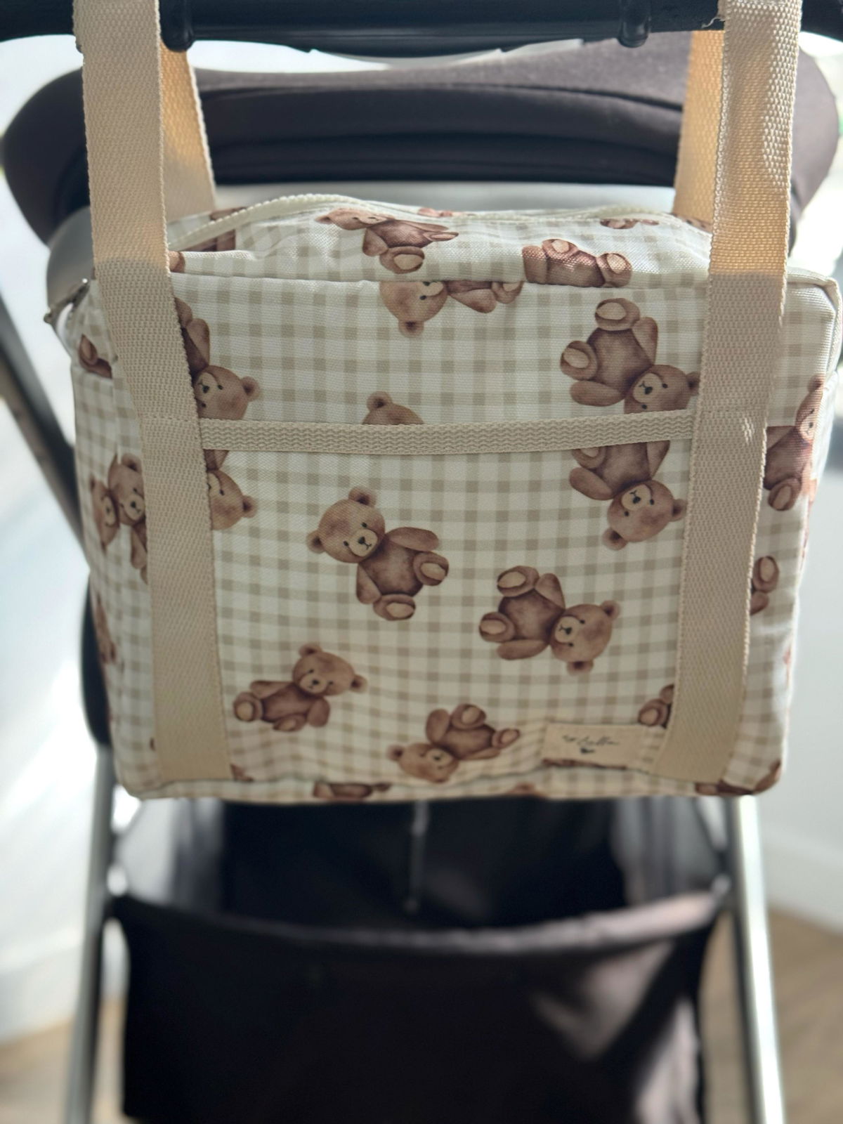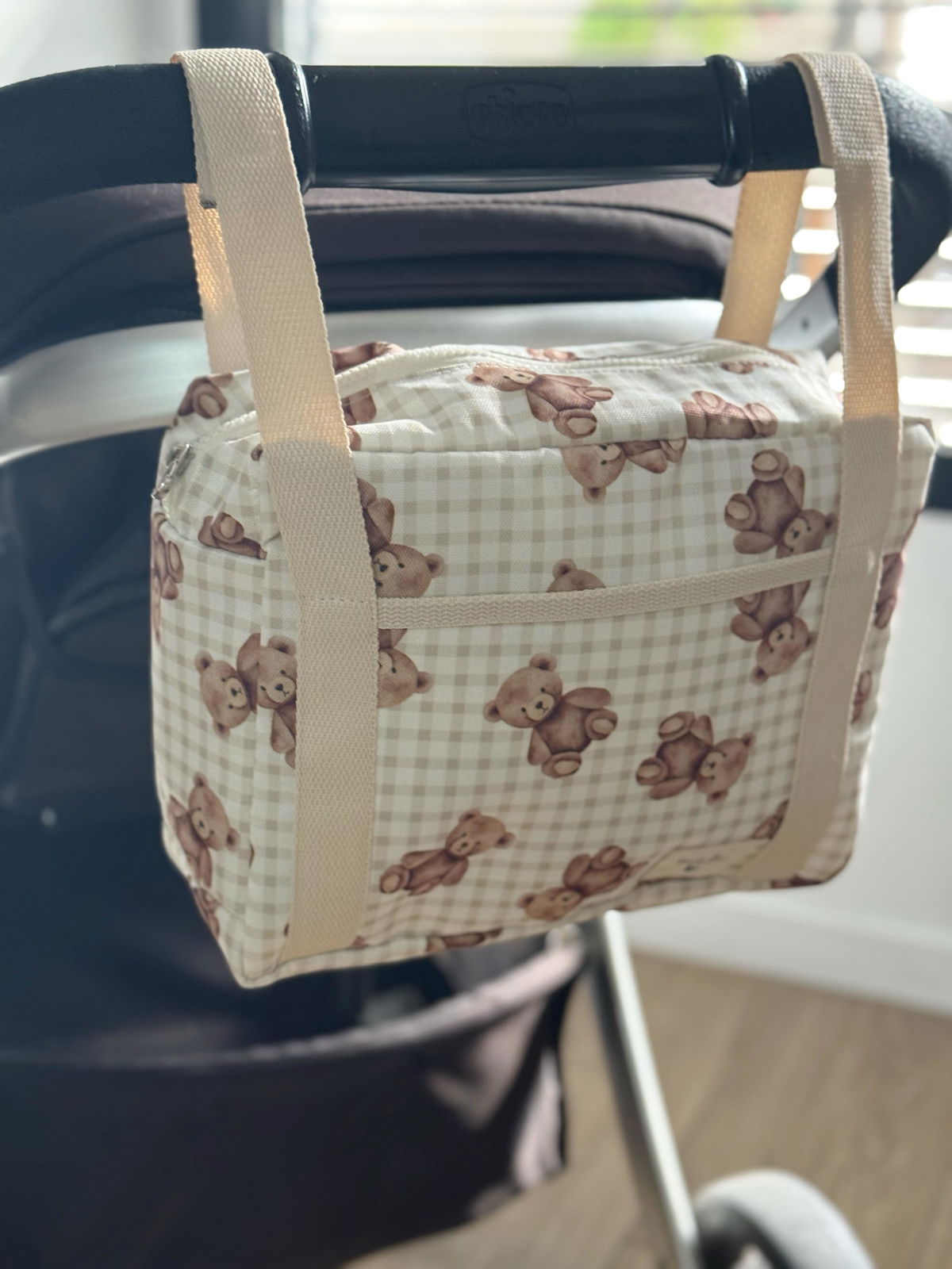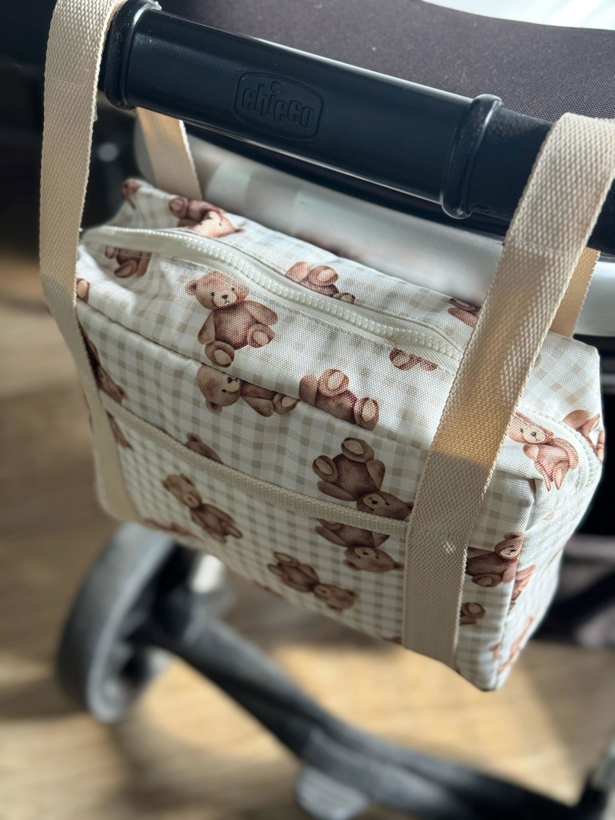Además, cuenta con un bolsillo externo diseñado especialmente para tus pertenencias más personales, como DNI, tarjetas, llaves y dinero. Y gracias a sus dos correas ajustables, podrás adaptarlo fácilmente a cualquier cochecito.