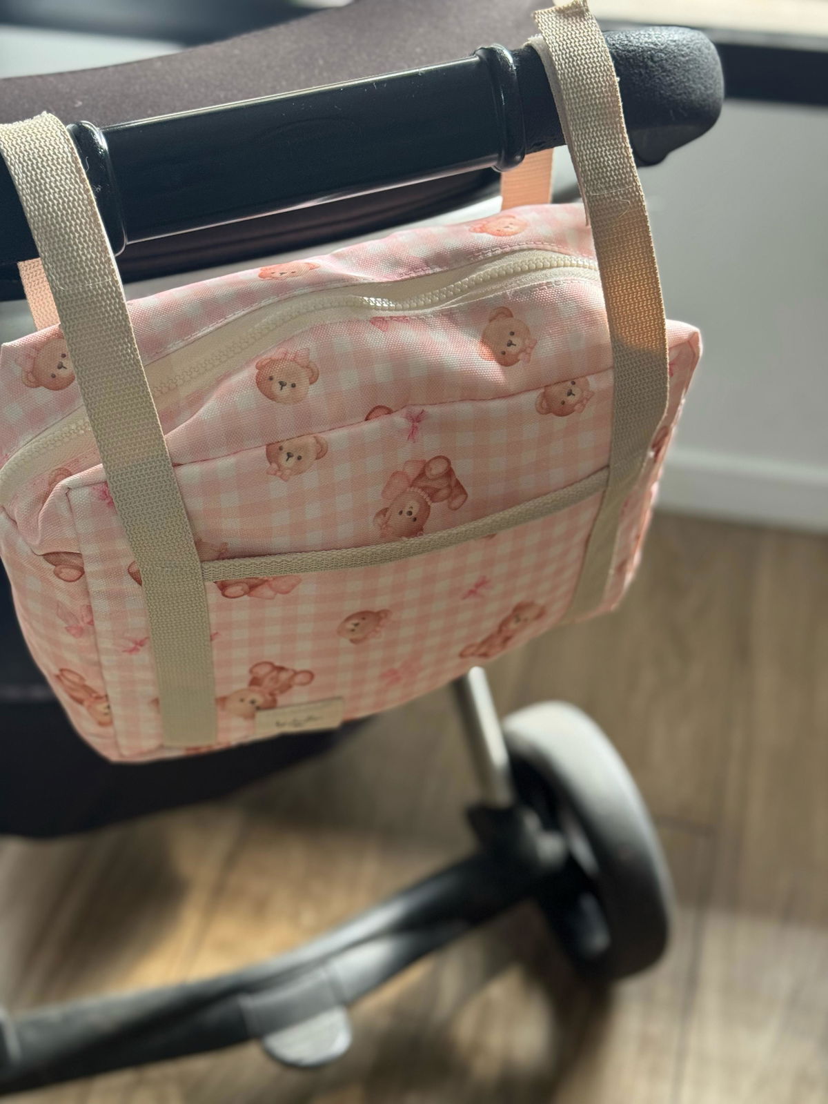 Además, cuenta con un bolsillo externo diseñado especialmente para tus pertenencias más personales, como DNI, tarjetas, llaves y dinero. Y gracias a sus dos correas ajustables, podrás adaptarlo fácilmente a cualquier cochecito.