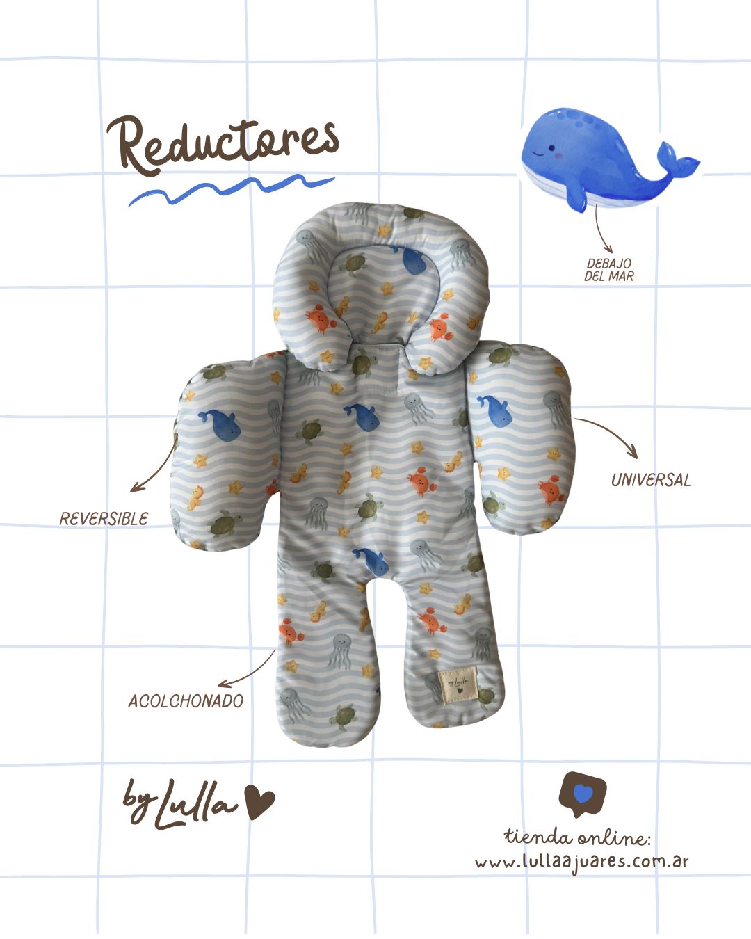 Es reversible, ofrece dos estilos y texturas. Su material acolchonado brinda soporte ergonómico, asegurando comodidad y seguridad en cada viaje.