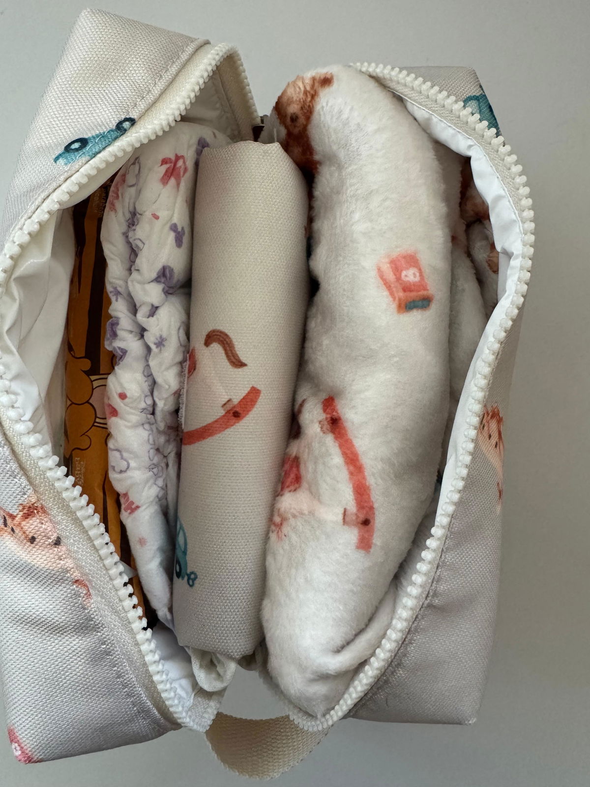 Con sus 22 cm ancho x 22 cm alto x 10 cm profundidad, entra todo lo que necesitás. Es ideal para organizar pañales, toallitas, mudita o lo que necesites llevar siempre a mano.