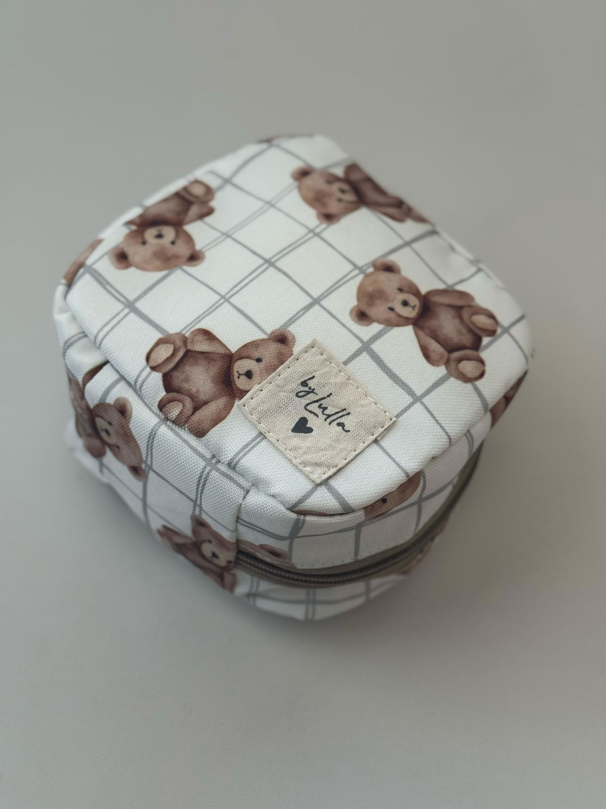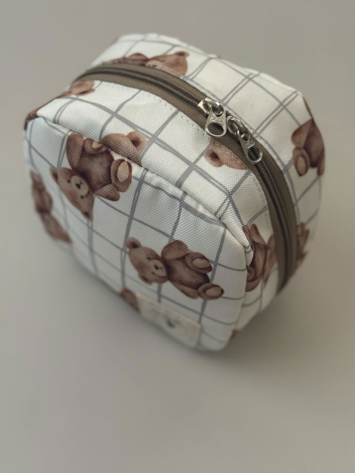 El estuche se abre completamente y tiene bolsillos de red en ambos lados, ofreciendo una organización práctica y accesible. Tiene un formato ideal para múltiples usos