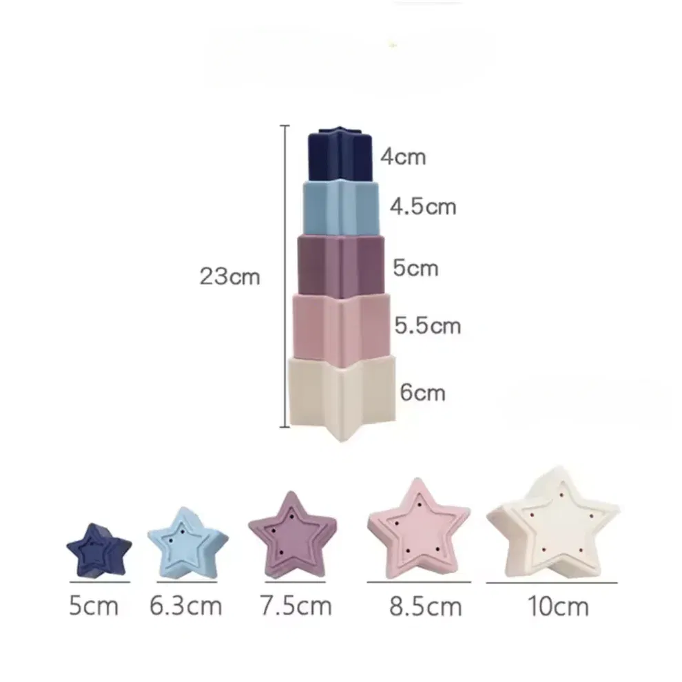 - Desarrollo motriz: La acción de apilar, encajar y manipular las estrellas ayuda a fortalecer la coordinación mano-ojo y las habilidades motrices finas.