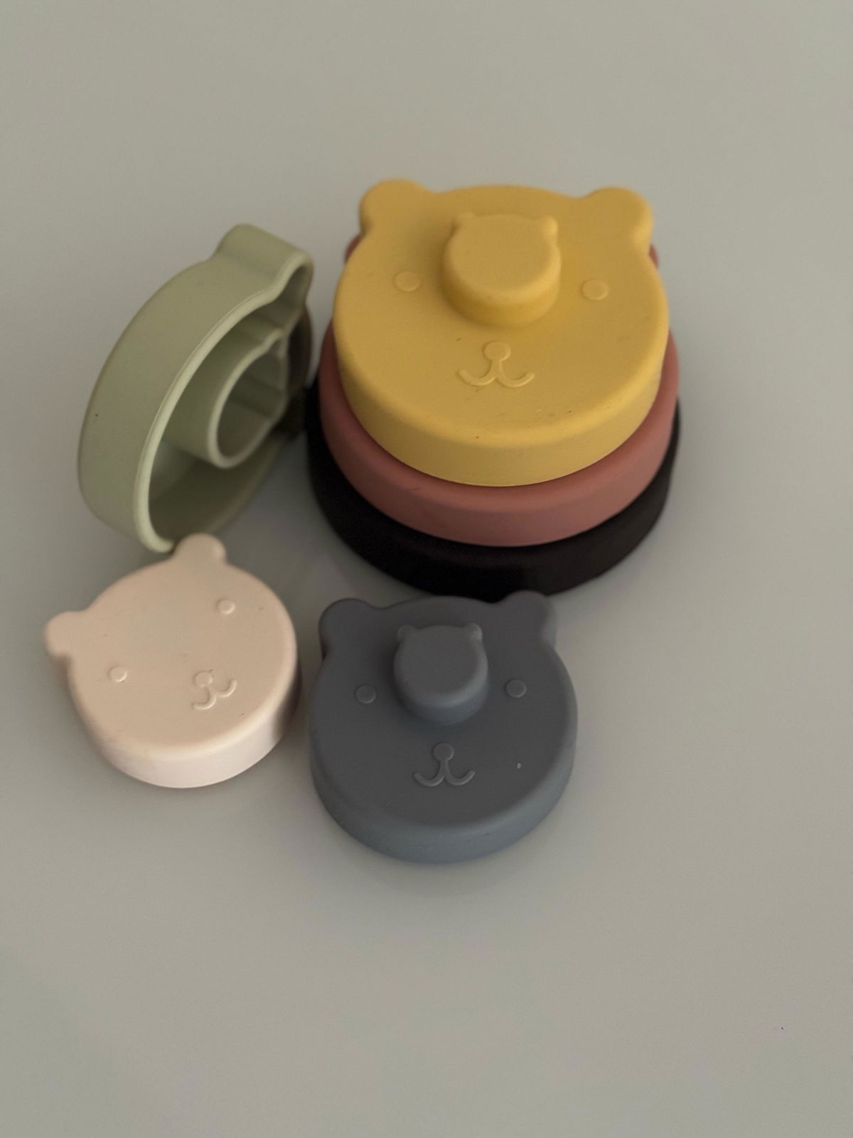 Juguete Didáctico apilables de 6 piezas están fabricados en silicona de alta calidad. Son duraderos, seguros para que tu bebé juegue y muerda libremente, y no contienen BPA ni ftalatos.