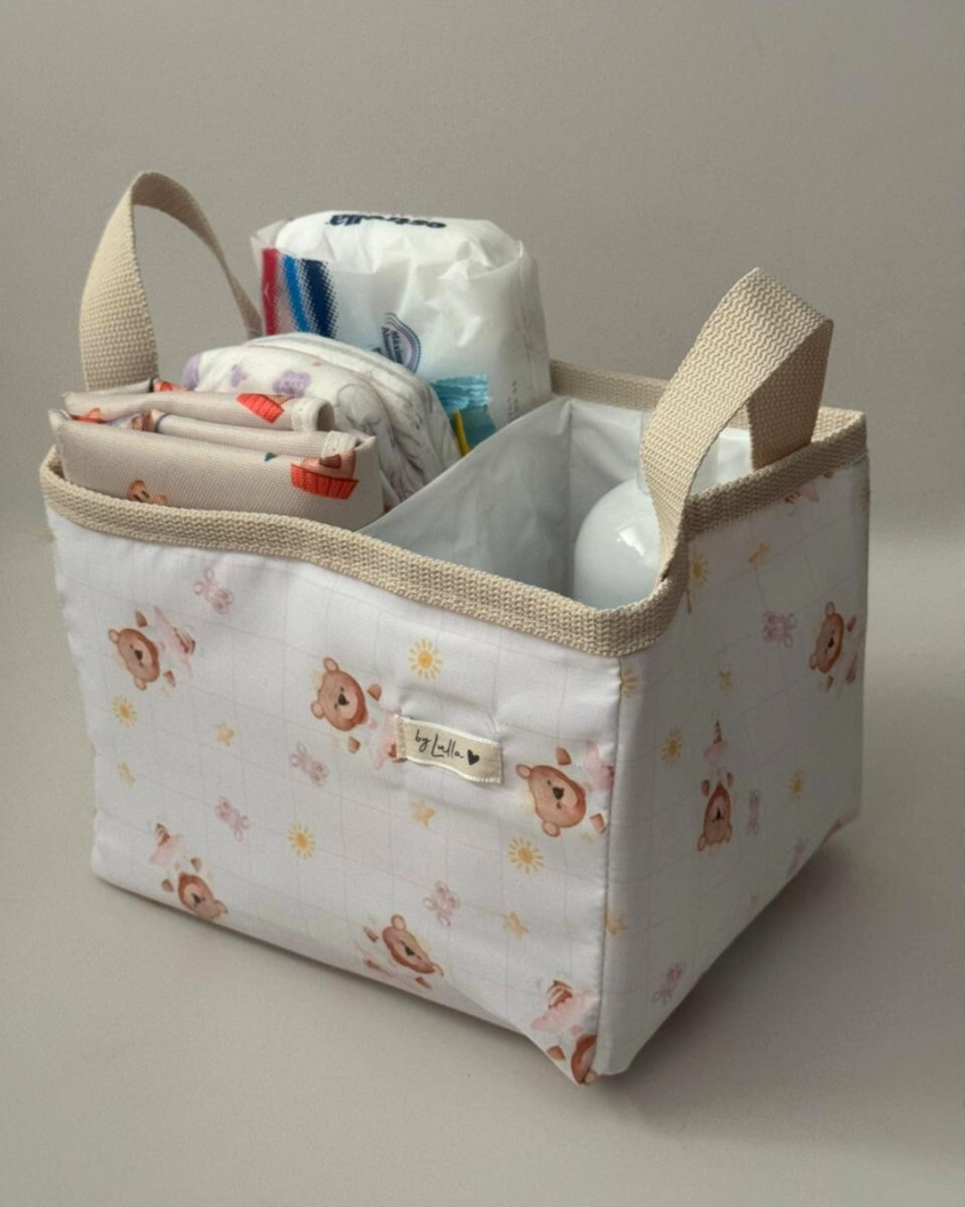 Con separadores internos, podés organizar fácilmente pañales, algodones, toallitas húmedas, cremas y mucho más, manteniendo cada cosa en su lugar.
