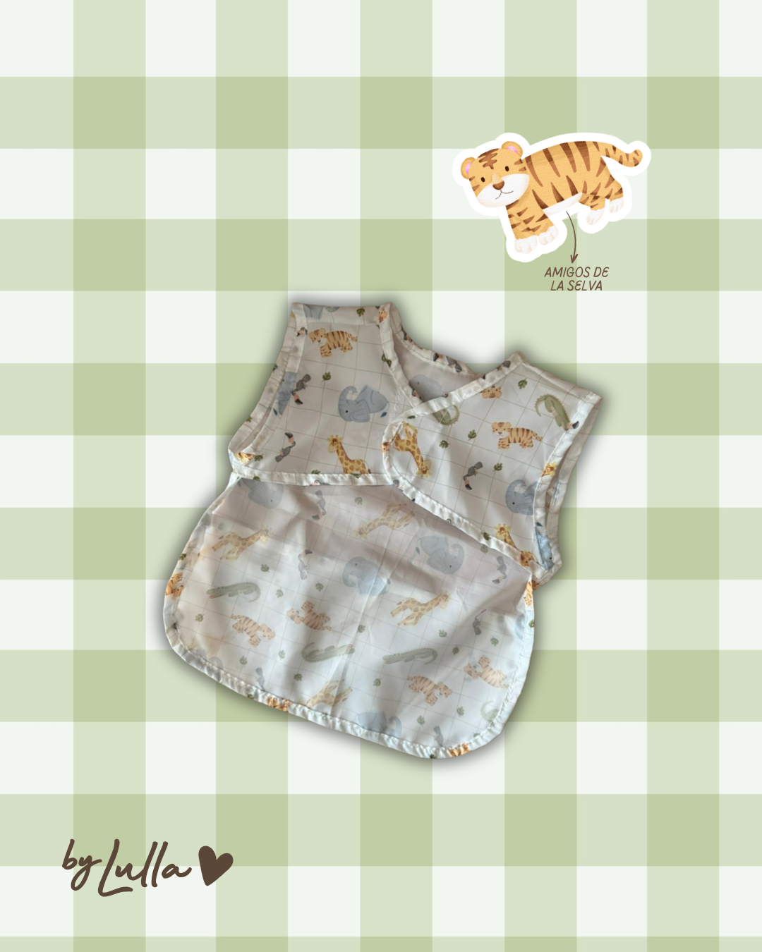 Están confeccionados con material impermeable y cuentan con un práctico bolsillo delantero "atrapa todo" que ayuda a contener derrames o migas.