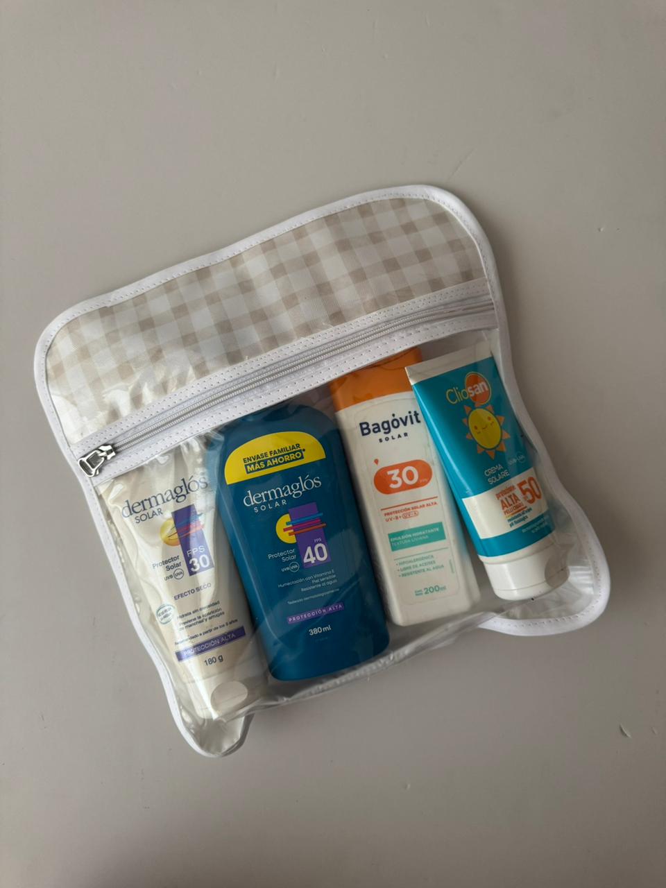 "Tip: También es genial para guardar protectores solares y cremas, ¡así evitás derrames dentro del bolso!"