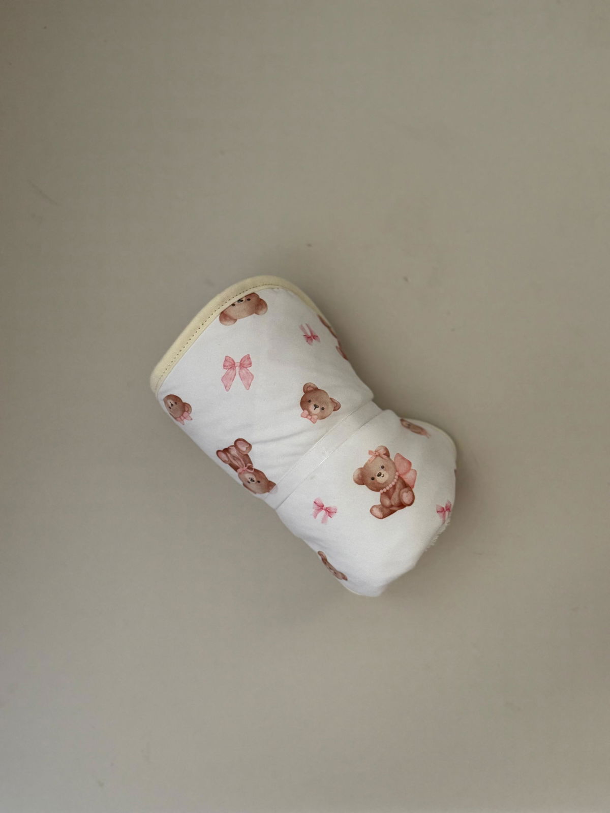 Toalla 100% algodón doble felpa, con capucha externa estampada.