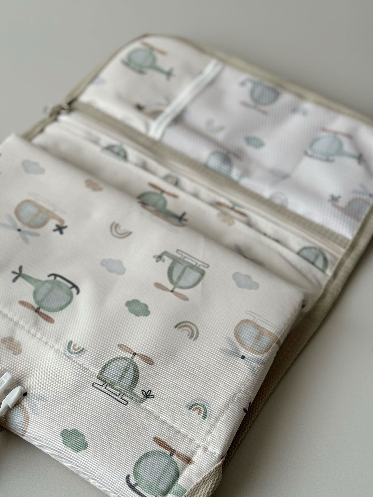 El cambiador incluye un cierre que permite separarlo fácilmente del bolso principal, proporcionando versatilidad y comodidad. Además, viene con un gancho integrado para colgarlo del cochecito, manteniendo todo al alcance de tu mano durante los paseos.