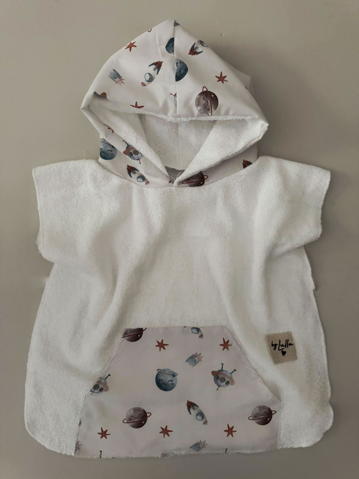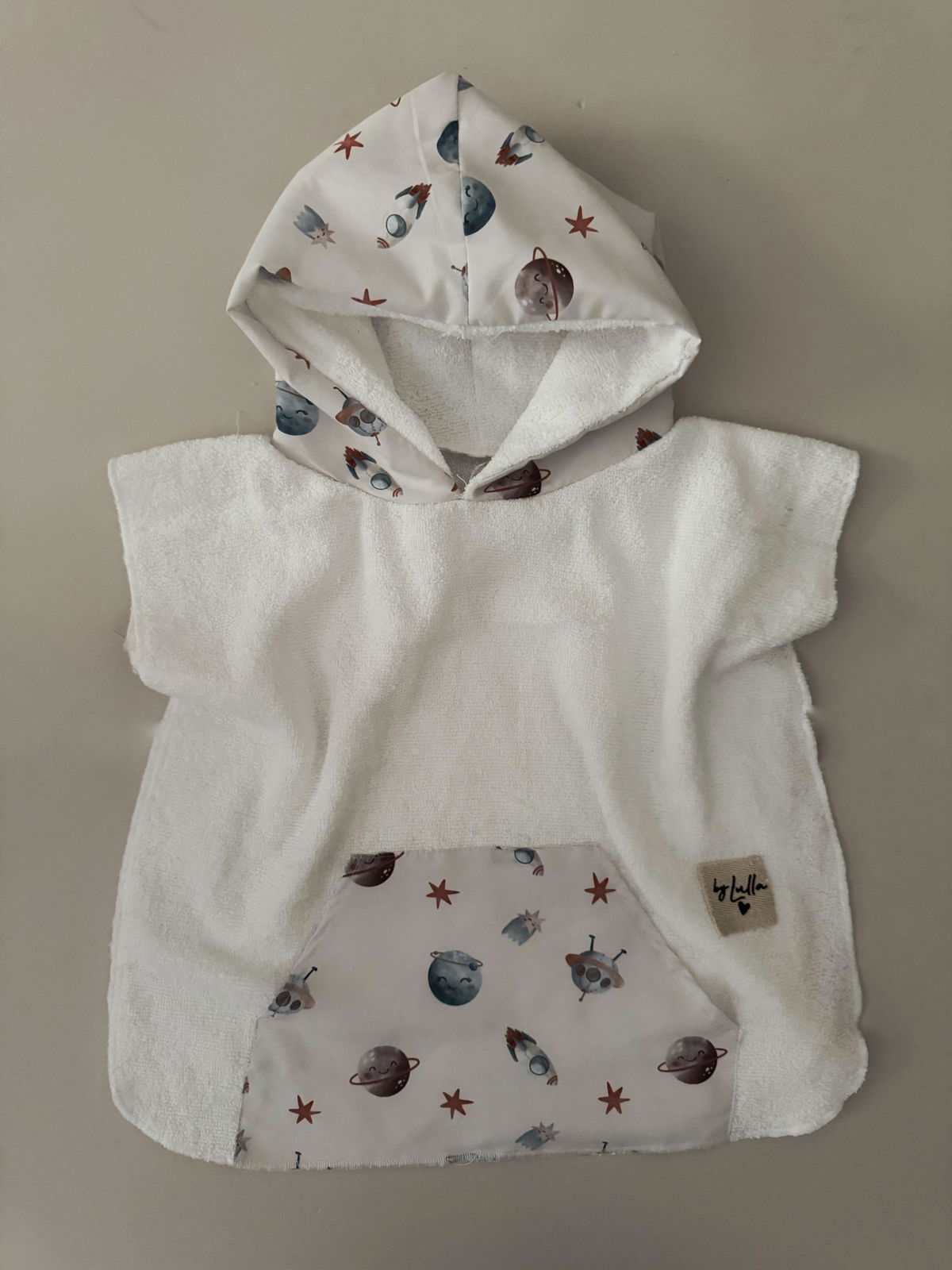 Poncho de toalla suave, confeccionado en 100% algodón para brindar suavidad y comodidad.