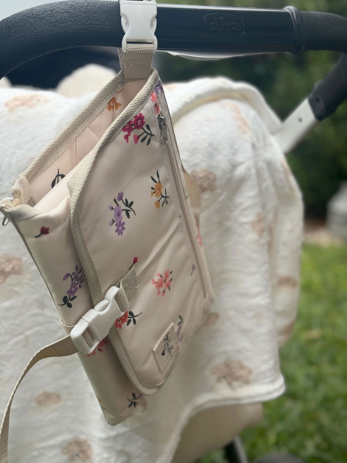El cambiador incluye un cierre que permite separarlo fácilmente del bolso principal, proporcionando versatilidad y comodidad. Además, viene con un gancho integrado para colgarlo del cochecito, manteniendo todo al alcance de tu mano durante los paseos.